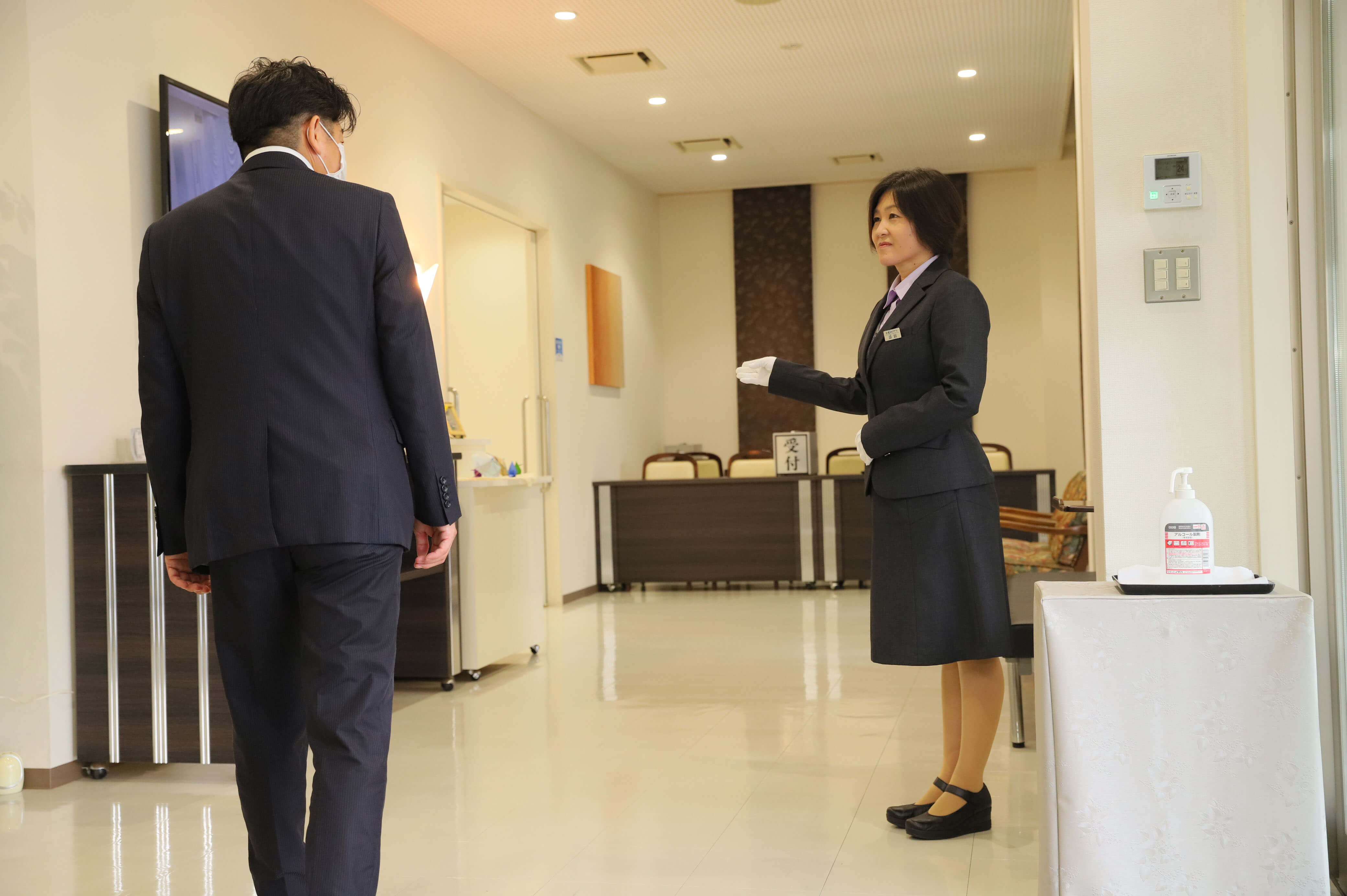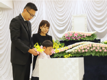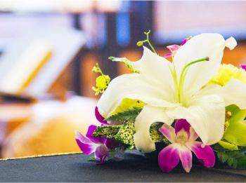 およそ1時間前までにお越し下さい。喪主様は皆様から頂戴したご供花の札のお名前・順番をご確認頂きます。開式30分程前には宗教者がお越しになりますのでご挨拶をお願いいたします。